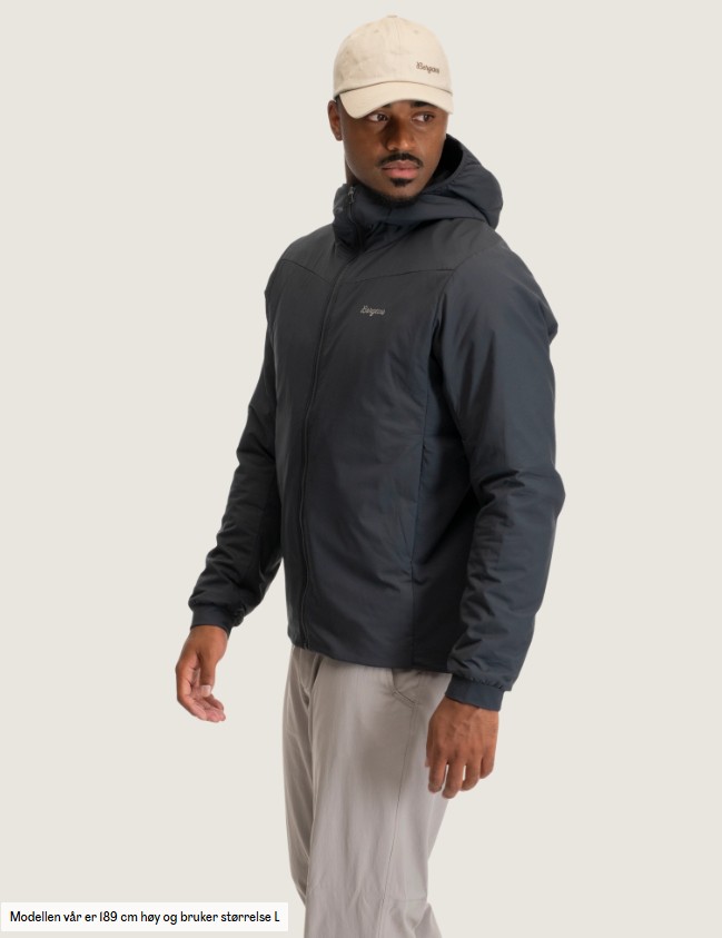 Holo Insulated Hood Jacket er en lett og meget allsidig jakke laget for alle typer tur og friluftsliv, enten du går i høyfjellet, nærskogen eller til og fra trening. Den fungerer utmerket både som mellomlag og ytterplagg og er vattert med Bergans Arctic Insulation som gir deilig varme. Denne typen isolasjon gjøre også at jakken beholder den isolerende evnen også om den blir litt fuktig. Det vind- og vannavvisende ytterstoffet beskytter mot lett regn og vind, samtidig som det har god pusteevne og slitestyrke. Stretch-paneler på sidene, som går hele veien gjennom armhulene, gjør at jakken ventilerer godt under aktivitet med litt puls. Middels tykkelse er ideelt til en rekke aktiviteter, og også til hverdags. Med sine lette og svært pakkbare materialer kan Holo-jakken lite plass i sekken eller vesken, noe som gjør den til en utmerket varmereserve på farten. Isolert hetten gir ekstra varme og beskyttelse i kaldt vær, mens den kroppsnære passformen gjør den lett å bevege seg i. Ser du etter en superanvendelig jakke som kan gi varme og komfort året rundt, både alene og som mellomplagg? Grattis, du har akkurat funnet det.