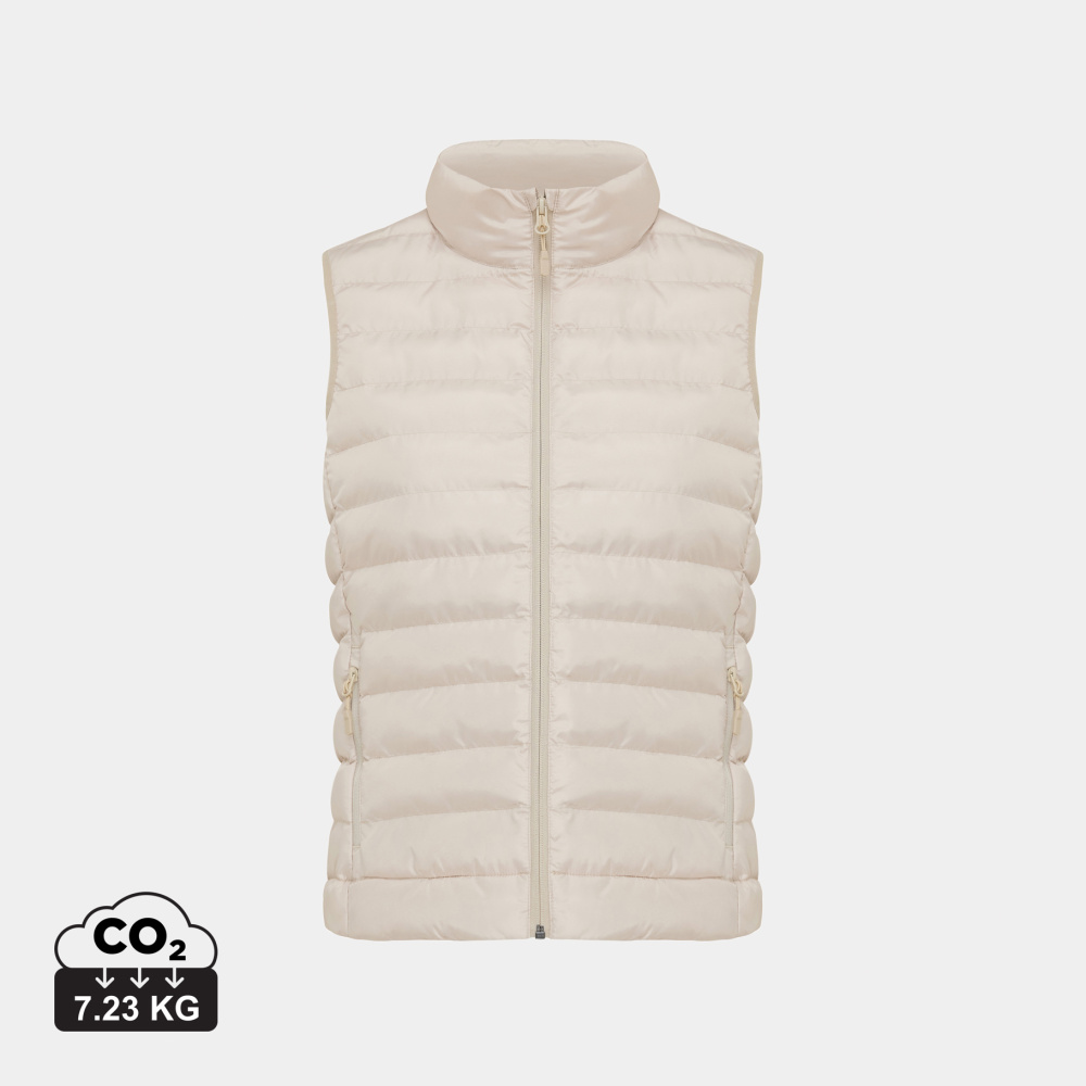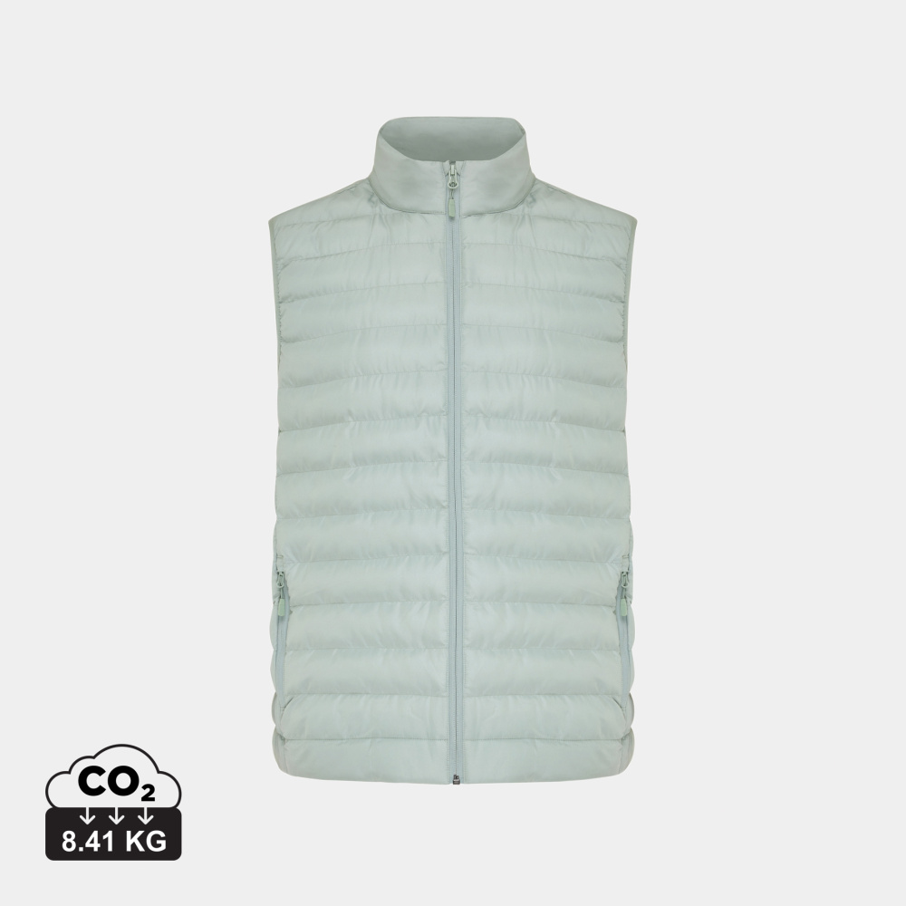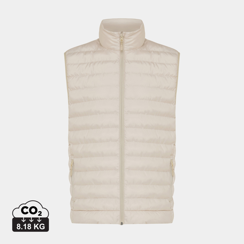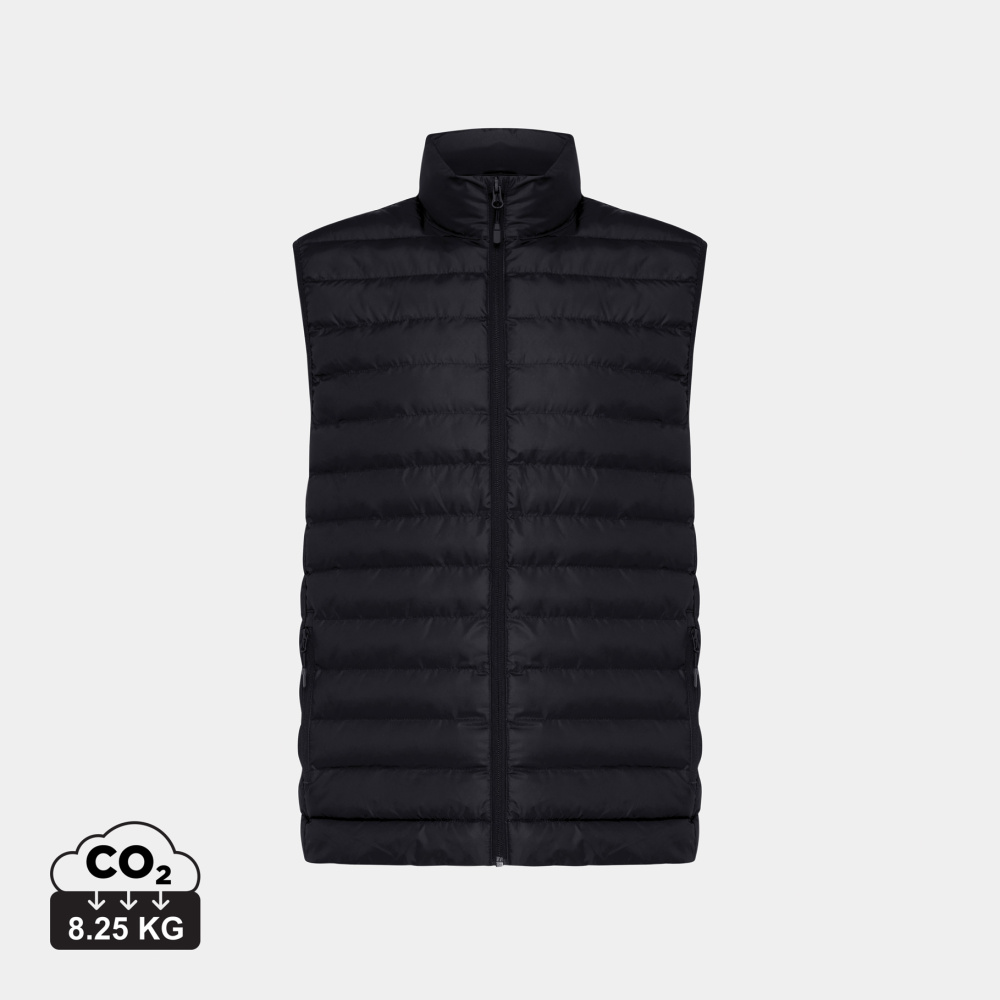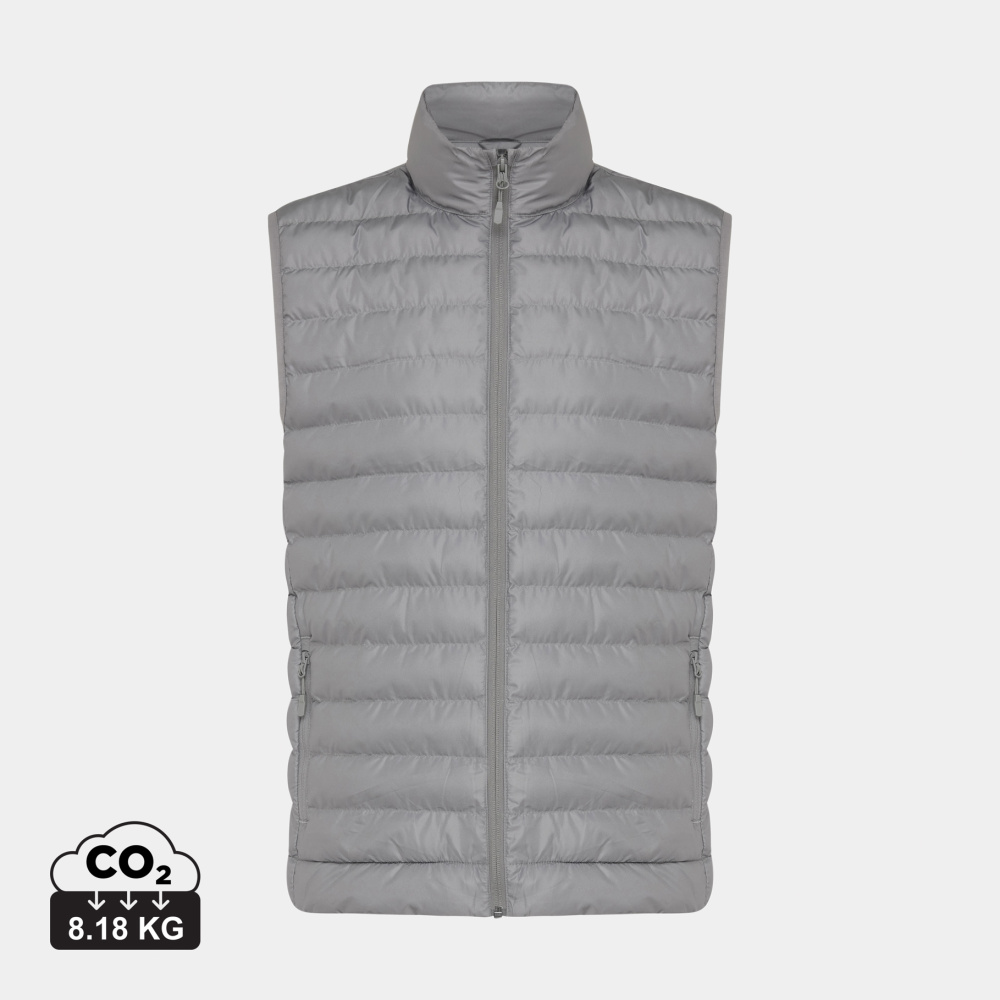 Meru bodyvarmer er en lett og vattert jakke for damer og herrer, laget av 100 % resirkulert polyester. Den er fylt med et perlefyll av 100 % resirkulert polyester som gir god isolasjon. Jakken har en omvendt glidelås i front og praktiske glidelåslommer i sidene, alle med matchende glidelåstrekkere. Elastiske bånd ved ermhullene sikrer en god passform. Innvendige sømmer er pent avsluttet med resirkulert kantbånd for en ren finish. I tillegg har den en fluor-/PFAS-fri vannavvisende impregnering.